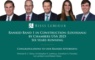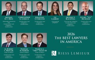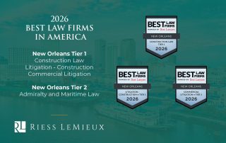 Riess LeMieux has once again been recognized by Best Lawyers in America® in the 2026 edition of “Best Law Firms®”. Since 2020, the firm has been honored for excellence in multiple practice areas, reflecting our commitment to delivering trusted counsel and practical solutions for our clients. For 2026, Riess LeMieux earned the following rankings in New Orleans: • Tier 1 [...]