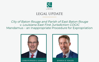 Legal Update: City of Baton Rouge and Parish of East Baton Rouge v. Louisiana East First Jurisdiction COGIC: Mandamus – an Inappropriate Procedure for Expropriation Authors: Christopher K. LeMieux and Joshua R. Yeager In a recent ruling out of the Louisiana First Circuit, City of Baton Rouge and Parish of East Baton Rouge v. Louisiana East First Jurisdiction COGIC, 2024-1200 [...]